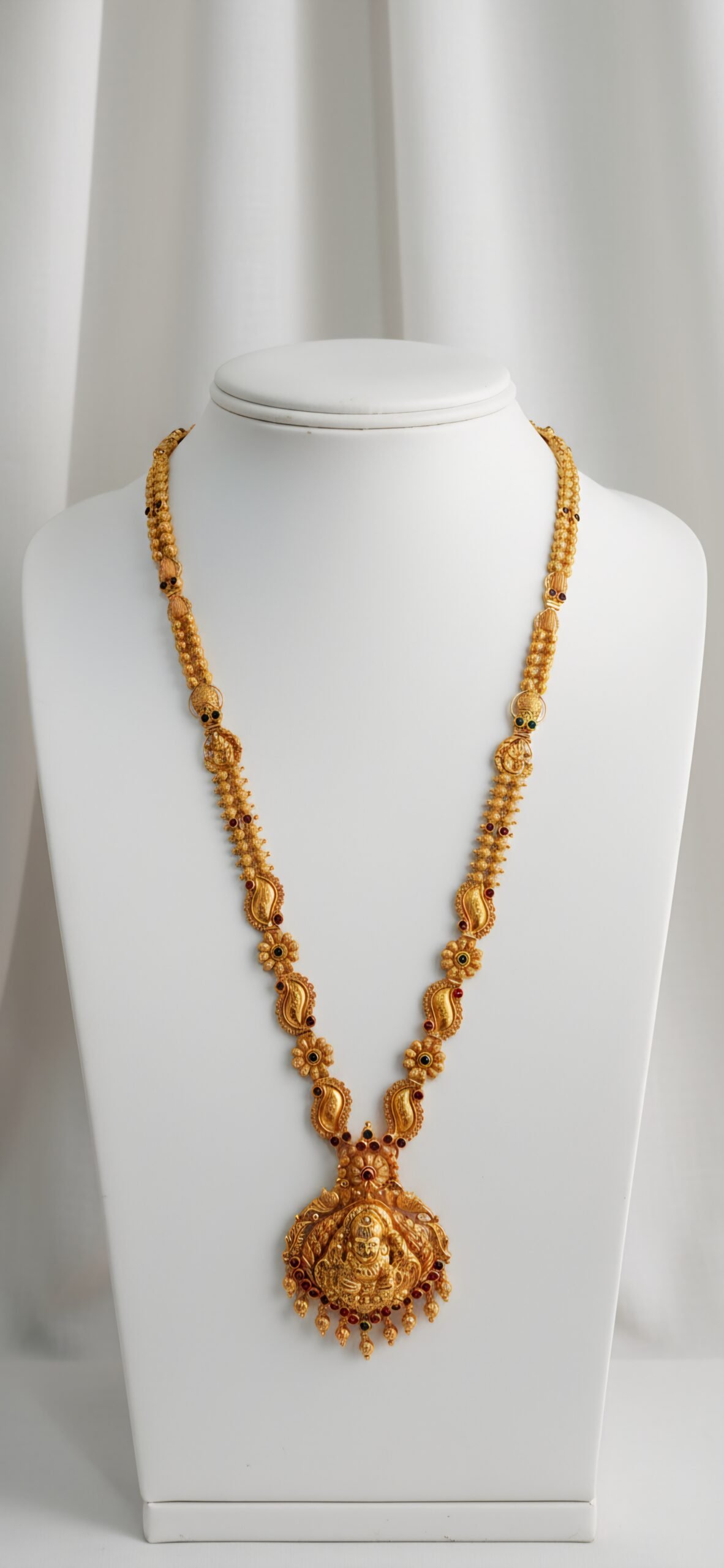 Be the first to review “Temple goddess motif long haram bridal Haram 22k gold”