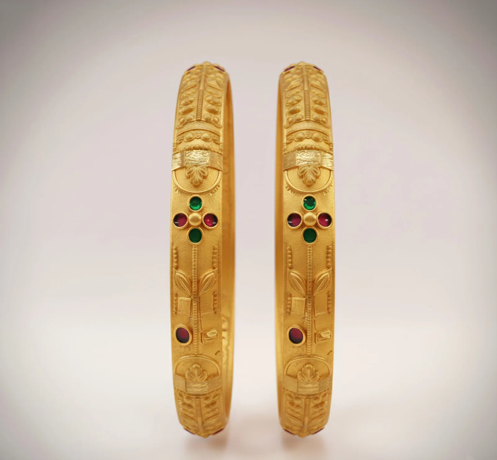 Be the first to review “Traditional south indian elegance with vibrant stones women Bangle 22k gold”
